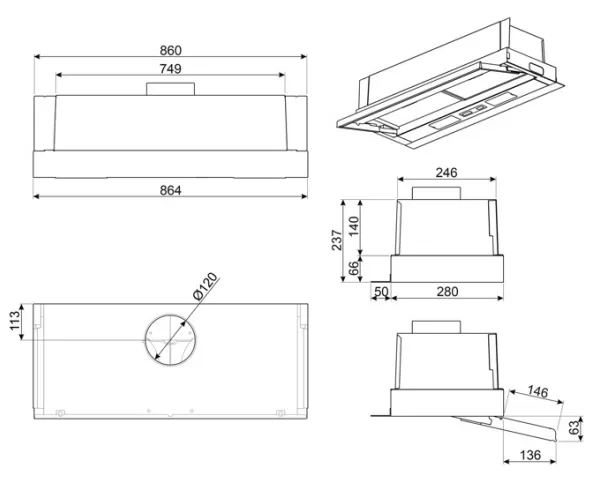 Largeur hotte 86 cm