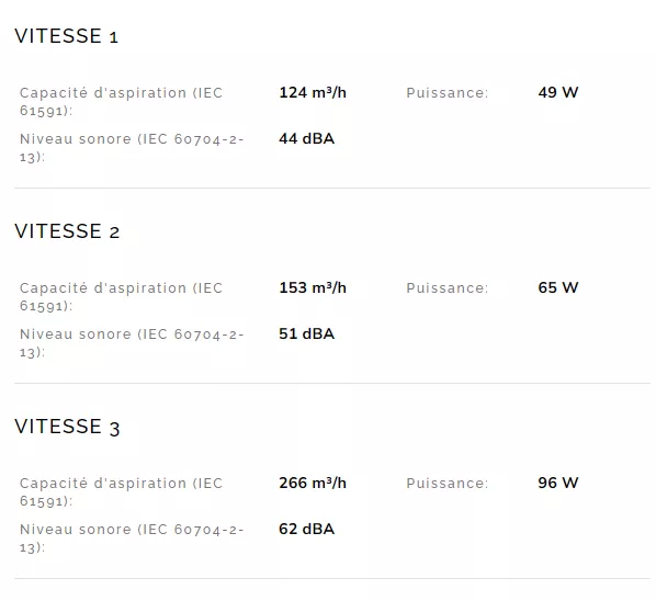Efficacité de filtration des graisses 65,1 %