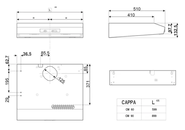 Largeur hotte 90 cm