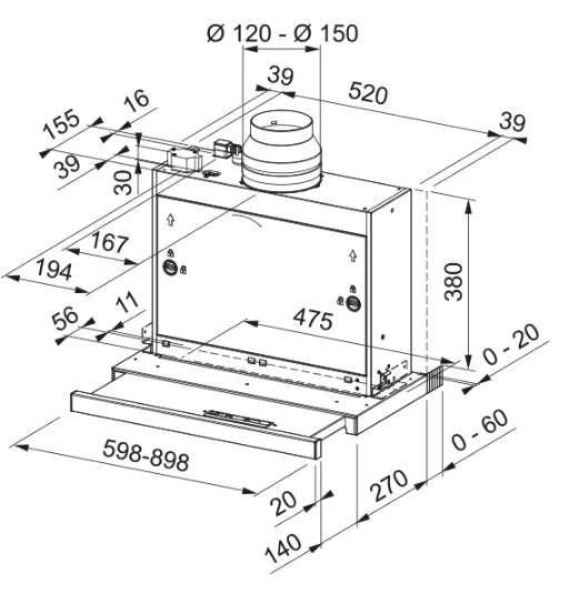 Niveau sonore mini 53 dB (A)/maxi 71 dB(A)