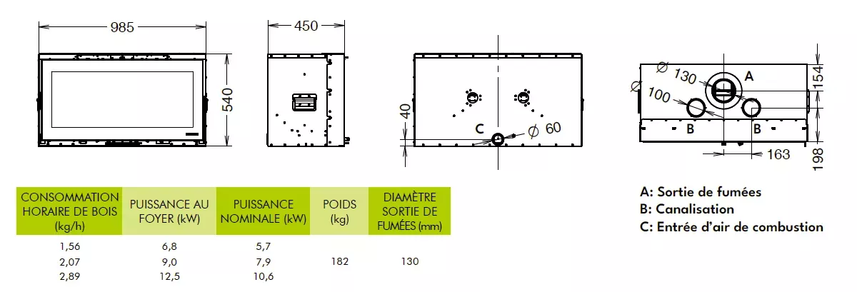 DIAMÈTRE DE SORTIE DES FUMÉES (mm) 130