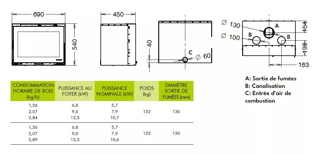 Equipé d’une grande et robuste chambre de combustion anti-rupture entièrement en fonte (qui permet de brûler des bûches de plus de 50 cm de longueur), d’un tiroir à cendres amovible, d’un échangeur de chaleur en acier inoxydable et fonte