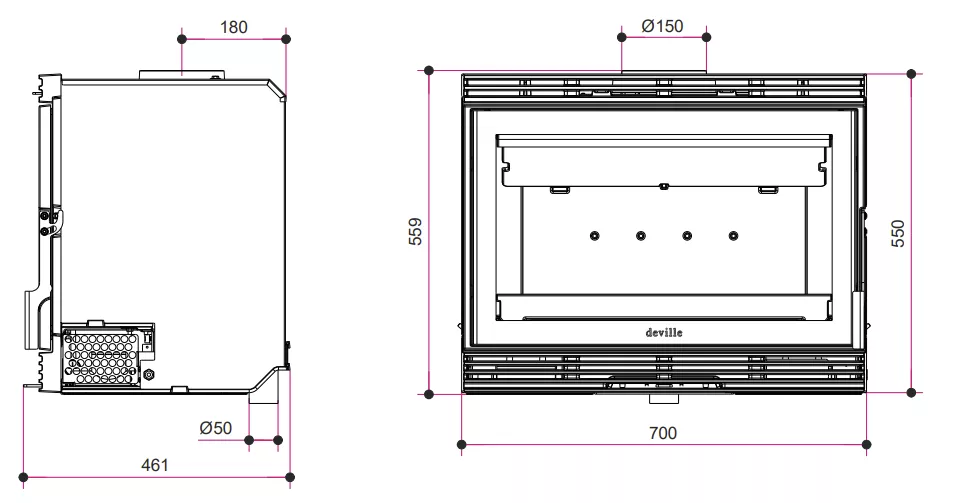 Raccordement air frais oui – ø 50 mm