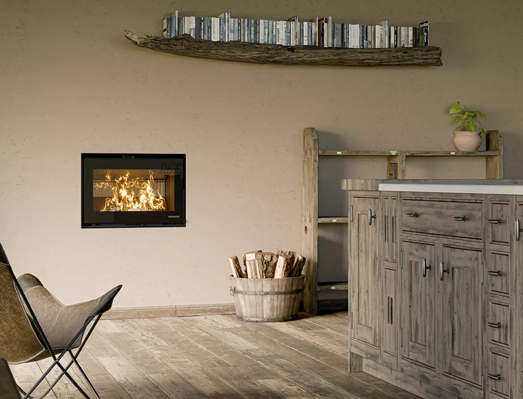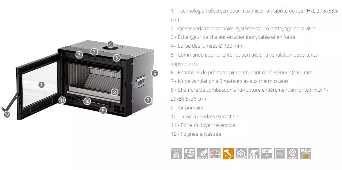 Insert à bois à haut rendement, doté de la technologie Fullscreen pour maximiser la vision du feu.