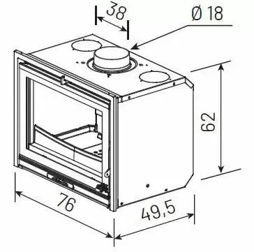 Combustible : bûches jusqu’à 55 cm et briquettes.