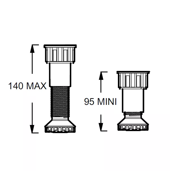 Pieds réglables pour vidage extra-plat E6D015 et E6D172.Pieds en option permettant de réduire la hauteur d’enjambement de votre baignoire de 4 cm