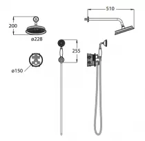 Bras mural et pommeau de douche en inox Ø 22,8 cmMitigeur thermostatiqueDouchette à main en inox et ABS 1 jetConnexion murale ronde - Flexible en PVC 150 cm
