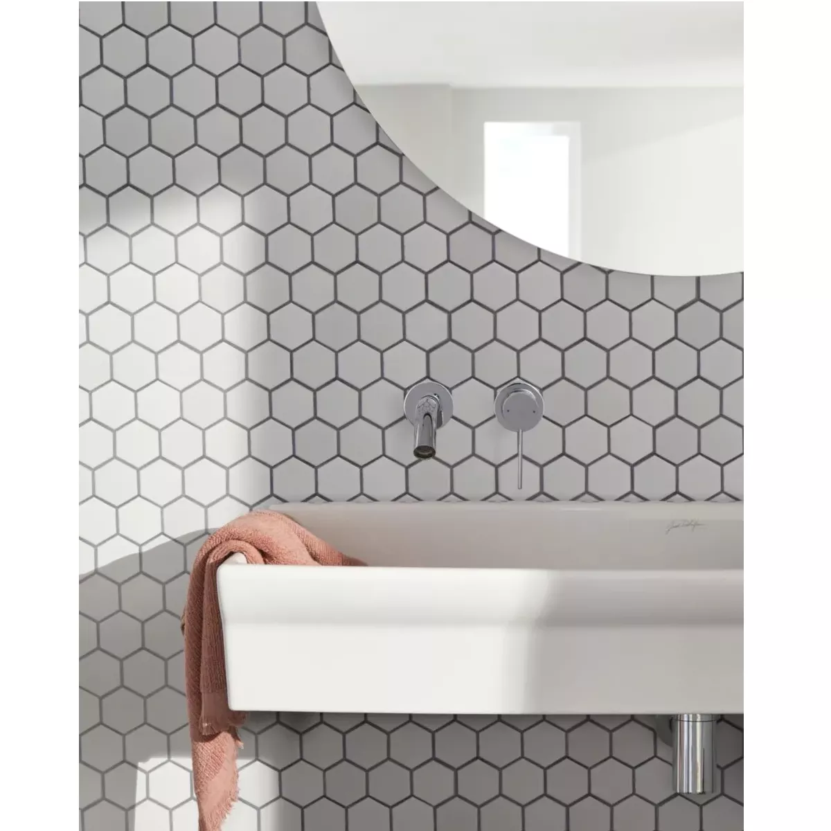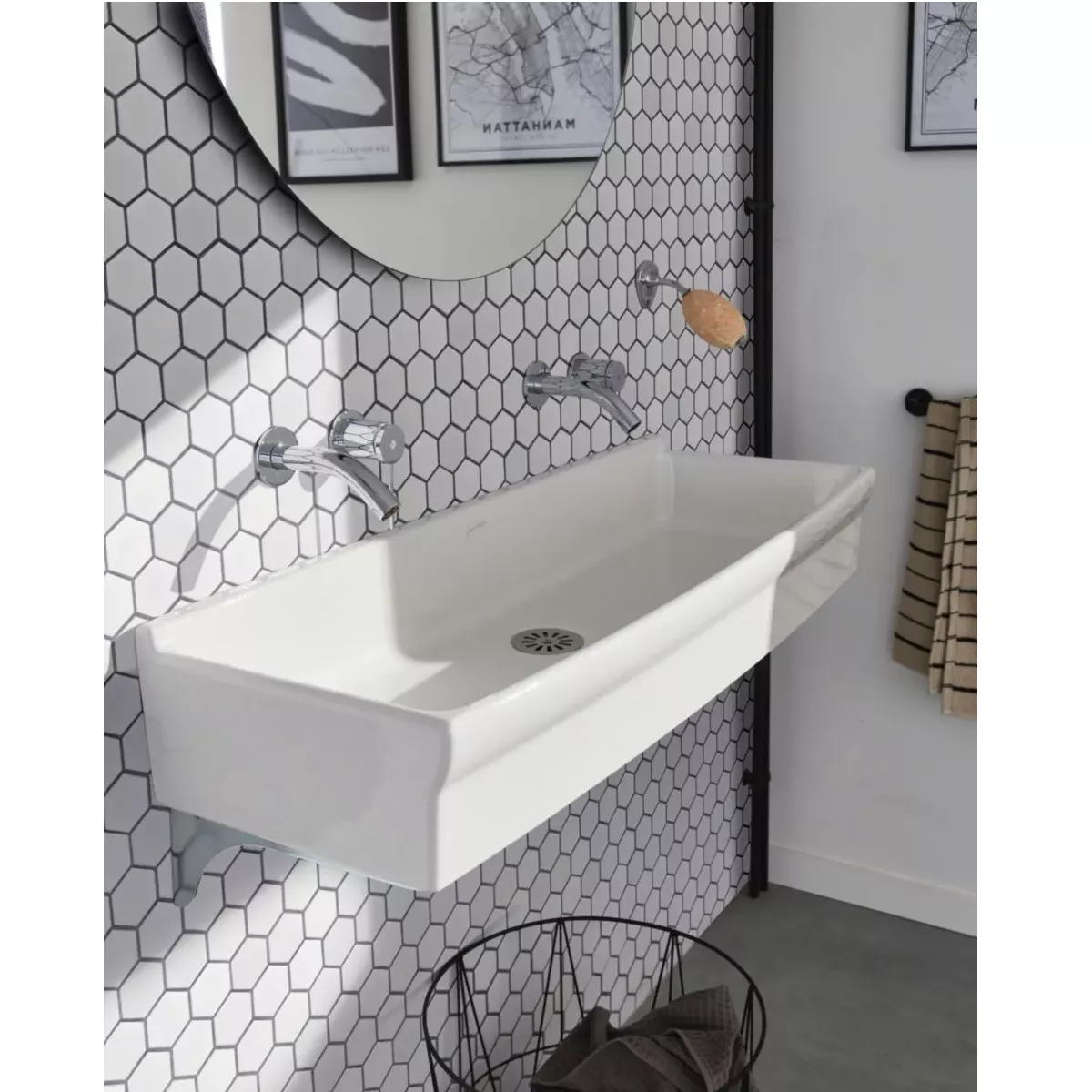 Lavabo mural en céramique (sans perçage robinetterie)