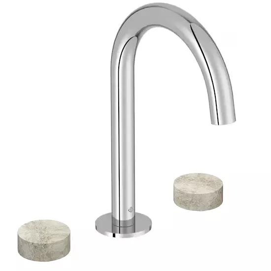 Mélangeur 3 trous - modèle standard - avec bec et poignées facettées.