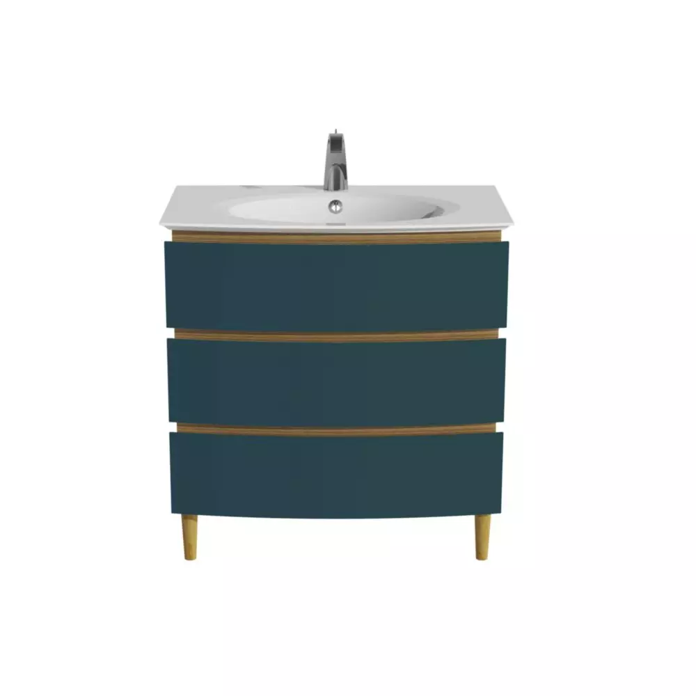 Le prix inclut le meuble 3 tiroirs (finition laque standard), les pieds & la vasque Ceramyl percée 1 trou (mitigeur & miroir non inclus).