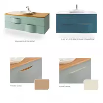 La finition intérieure beige ou chêne des poignées joliment ondulées apporte douceur et élégance, accompagnée d’une touche de sensualité à votre décor de bain.