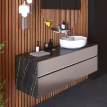 Le prix inclut le meuble 2 tiroirs, le plan & côtés en Céram décor (vasque à poser, mitigeur, bonde, miroir & colonne non inclus).