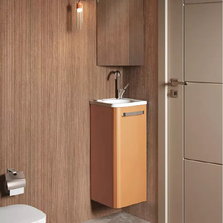 Meuble lave-mains d'angle JAZZ 30,5cm 1 porte laqué avec vasque Céramyl® - DECOTEC