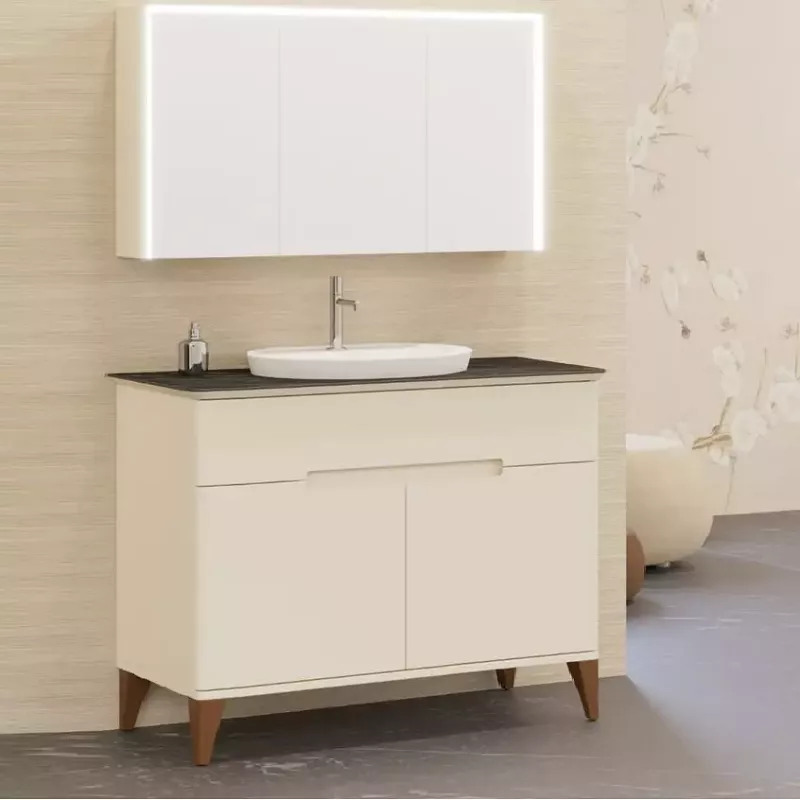 Disponible en L104, L124, L154 cm (double vasque) & en 2 tiroirs, 3 tiroirs ou 1 tiroirs/2 portes