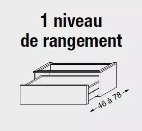 1 niveau de rangement - Côtés et façades laqué - Poignée intégrée - Les meubles sont livrés sans visserie de fixation - Les ceintures avec éclairage LED sont équipées d'un interrupteur infrarouge pouvant être placé à gauche ou à droite (choix à réaliser au moment de l'installation). - L'interrupteur infrarouge doit impérativement être installé à plus de 15 cm de toute surface verticale. - Les sous tables 1 niveau de rangement ne remplissent pas les qualités pour répondre à la norme NF. - Les poignées intégrées ne sont pas applicables sur les meubles mélaminé.