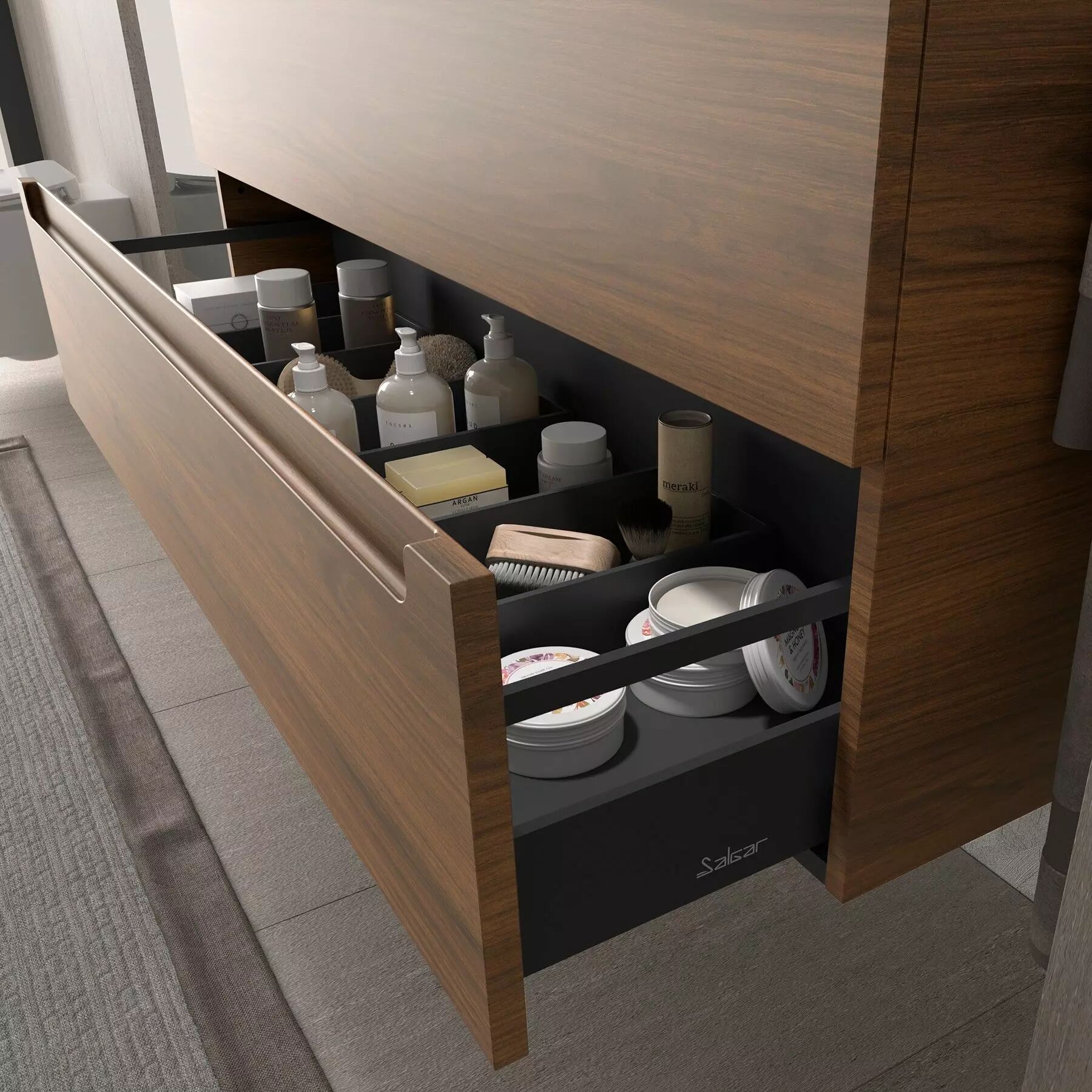 Accueil > Divers > Salgar > Meuble suspendu MONTERREY 100cm 2 tiroirs Noyer maya (sans vasque) - SALGAR Réf. 102941