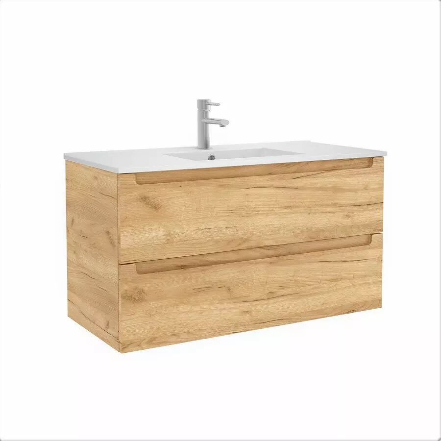 Meuble suspendu MONTERREY 80cm 2 tiroirs Chêne africain (sans vasque) - SALGAR Réf. 91047
