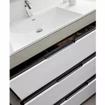 Le prix inclut le meuble 3 tiroirs (finition laque standard) & la vasque Solidsurface (mitigeur & miroir non inclus).