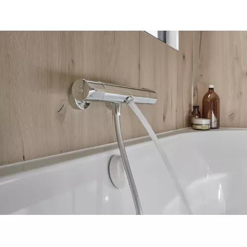 Recommandations : l’installation murale est recommandée pour une largeur de plage de la baignoire jusqu’à 105 mm (au-delà, privilégier l’installation sur colonnettes universelles E75456-CP).