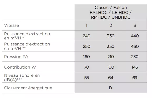 Mode d'aspiration : Livrée en version recyclage, évacuation possible