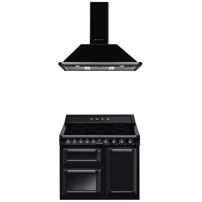 Hotte décorative pyramidale 100cm 606m3/h (787m3/h intensif) Noir - SMEG Elite Réf. KT100BLE