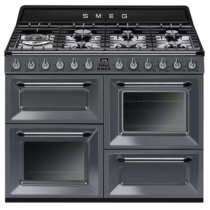 Piano de cuisson Victoria 110cm 2 fours multifonction Vapor Clean / 7 foyers gaz Gris ardoise - SMEG Elite Réf. TR4110GR