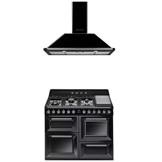 Piano de cuisson 110cm Victoria 2 fours Vapor Clean 63l + 1 gril / 7 brûleurs gaz Noir - SMEG Elite Réf. TR4110BL1