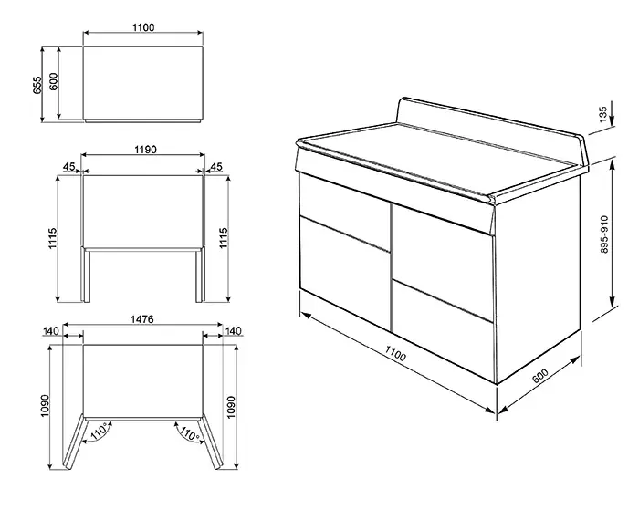 Dosseret émaillé noir, côtés et plinthe anthracite