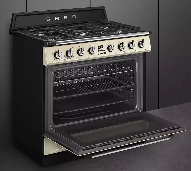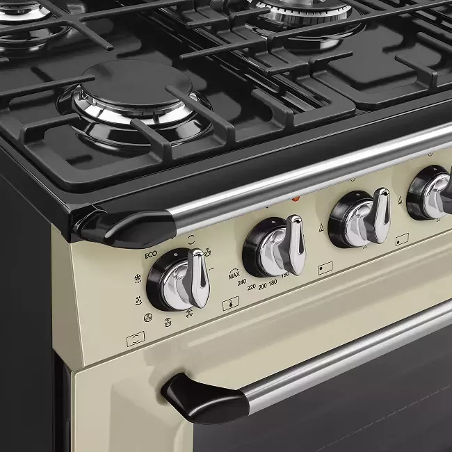 Piano de cuisson au design compact avec four électrique et plan de cuisson gaz : efficace et réactive, la source de chaleur visible permet un contrôle total et le choix de la bonne intensité.