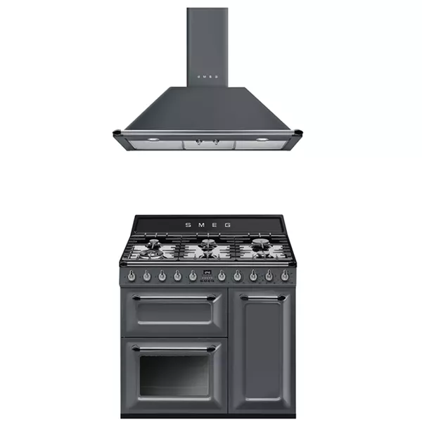 Piano de cuisson 90cm Victoria 2 fours 66+63l + 1 gril / 6 brûleurs gaz Gris ardoise - SMEG Elite Réf. TR93GR
