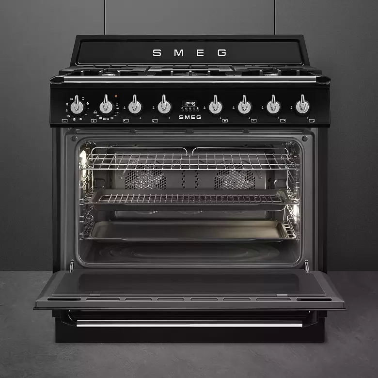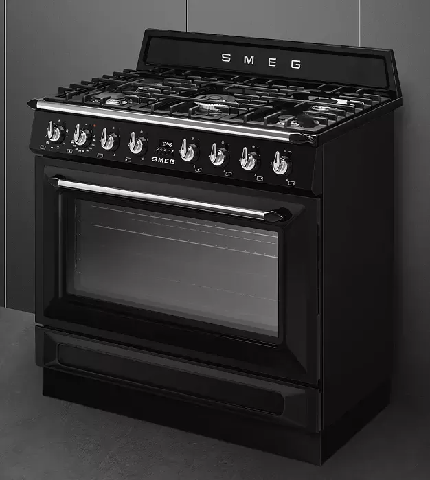 Piano de cuisson Victoria 90 cm Four vapor Clean / 5 foyers gaz Noir - SMEG Réf. TR90GMBL