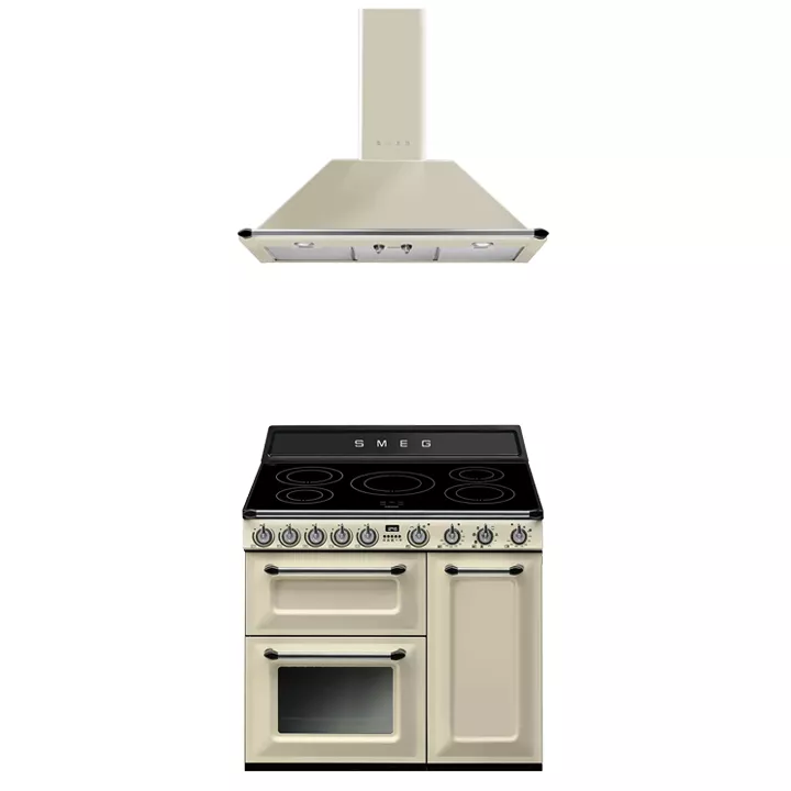 Hotte décorative Victoria 90cm 567m3/h (788m3/h intensif) Crème - SMEG Elite Réf. KT90PE
