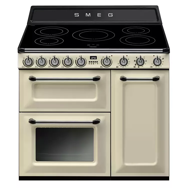 Piano de cuisson 90cm Victoria 2 fours électriques 68+65l + 1 gril / 5 foyers induction Crème - SMEG Elite Réf. TR93IP2
