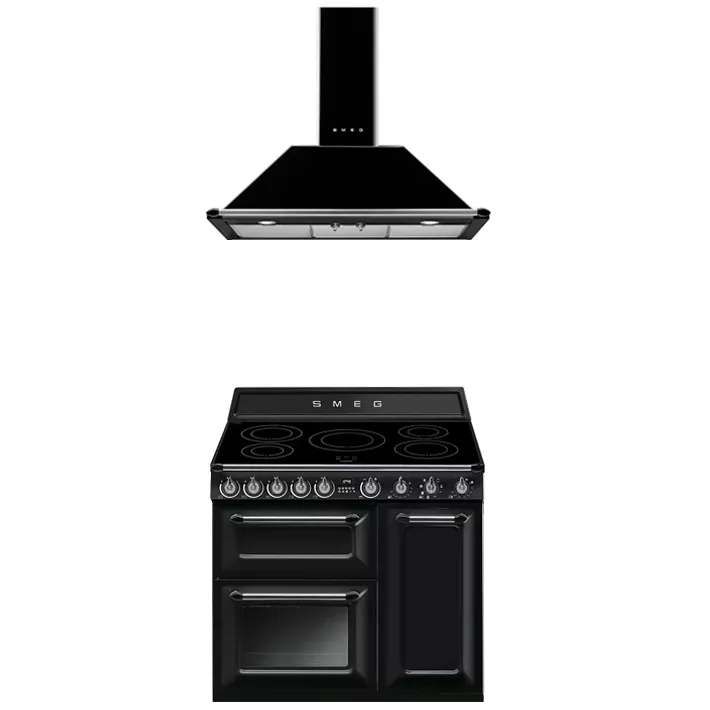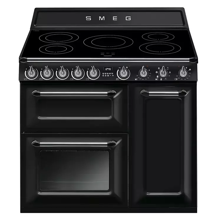Piano de cuisson 90cm Victoria 2 fours électriques 68+65l + 1 gril / 5 foyers induction Noir - SMEG Elite Réf. TR93IBL2