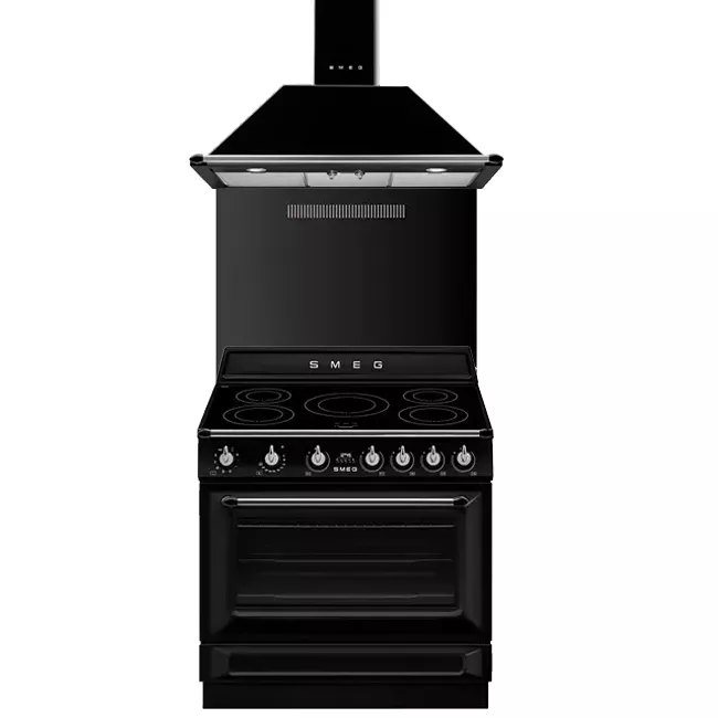 Hotte décorative Victoria 90cm 567m3/h (788m3/h intensif) Noir brillant - SMEG Elite Réf. KT90BLE