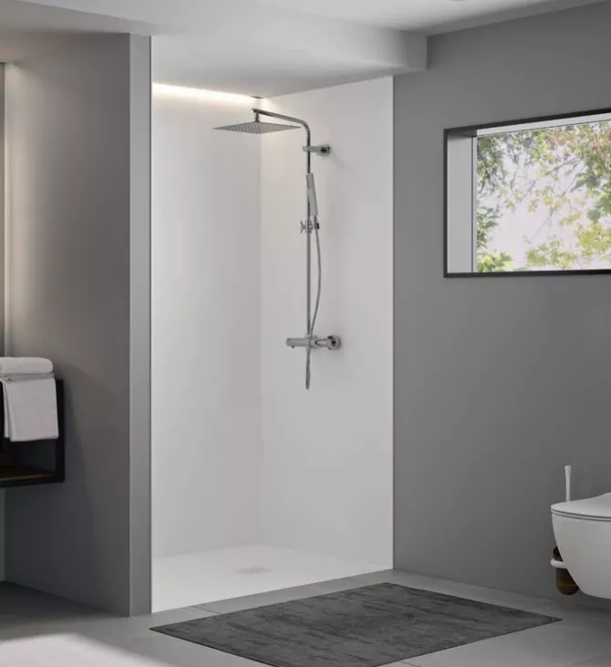 Kinewall Design est la solution pour une rénovation de salle de bain rapide et facile , mais est également adapté à une construction neuve. Ces panneaux muraux se posent sur n’importe quel revêtement, sans aucun travail de préparation.