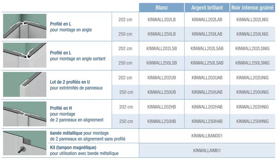 Profilés de montage (blanc, argent brillant ou noir intense grainé) en option (possibilité de montage sans profilés)