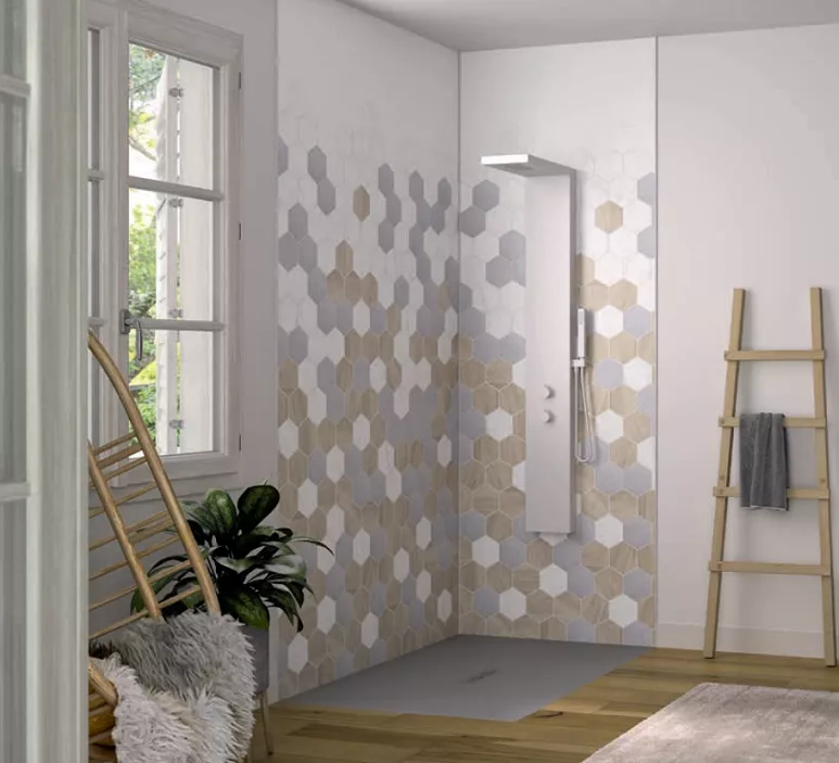 Kinewall Design est la solution pour une rénovation de salle de bain rapide et facile , mais est également adapté à une construction neuve. Ces panneaux muraux se posent sur n’importe quel revêtement, sans aucun travail de préparation.