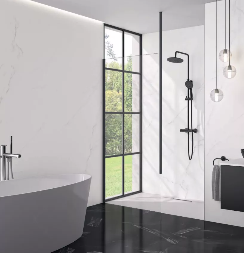 Kinewall Design est la solution pour une rénovation de salle de bain rapide et facile , mais est également adapté à une construction neuve. Ces panneaux muraux se posent sur n’importe quel revêtement, sans aucun travail de préparation.