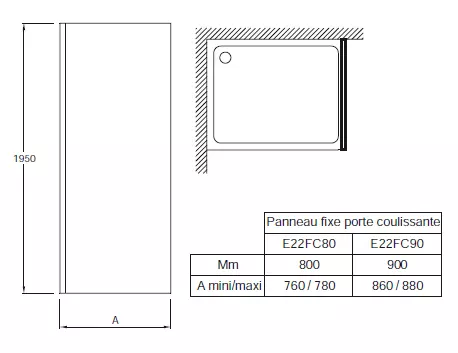 Paroi fixe Contra 90cm verre Transparent profilé Chromé - JACOB DELAFON Réf. E22FC90-GA