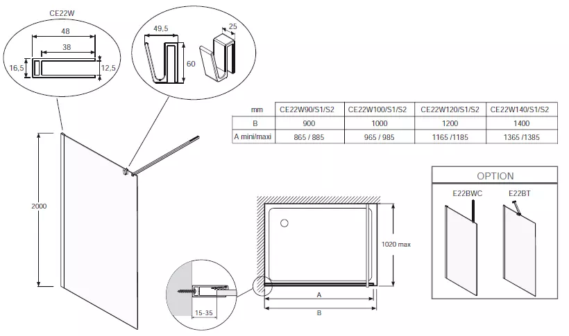 Paroi fixe pour un espace douche ouvert.