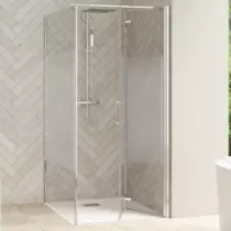 Installation en angle avec porte pivotante P sans seuil ou avec porte pliante S sans seuil