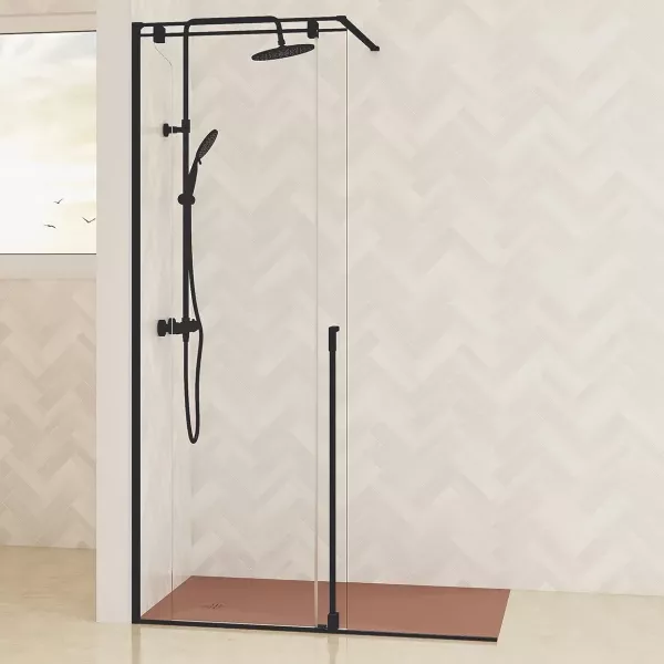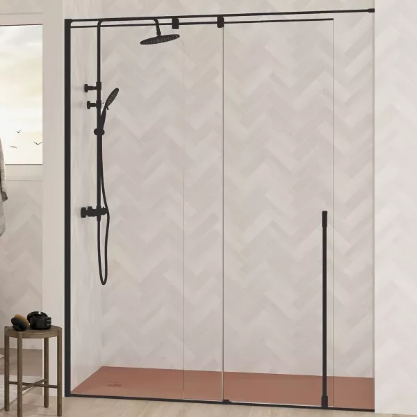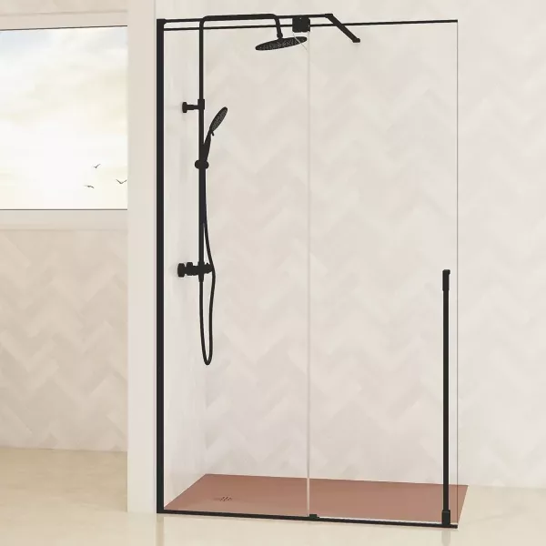 Paroi simple coulissante pour un espace douche ouvert, spécial gain de place; Idéale pour les petites salles de bain, puisqu'elle ne nécessite aucun dégagement extérieur.