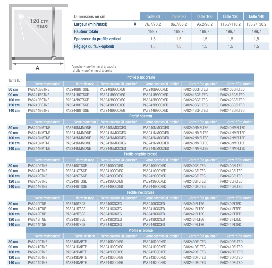 Installation réversible gauche/droite SELON FINITION DE VERRE