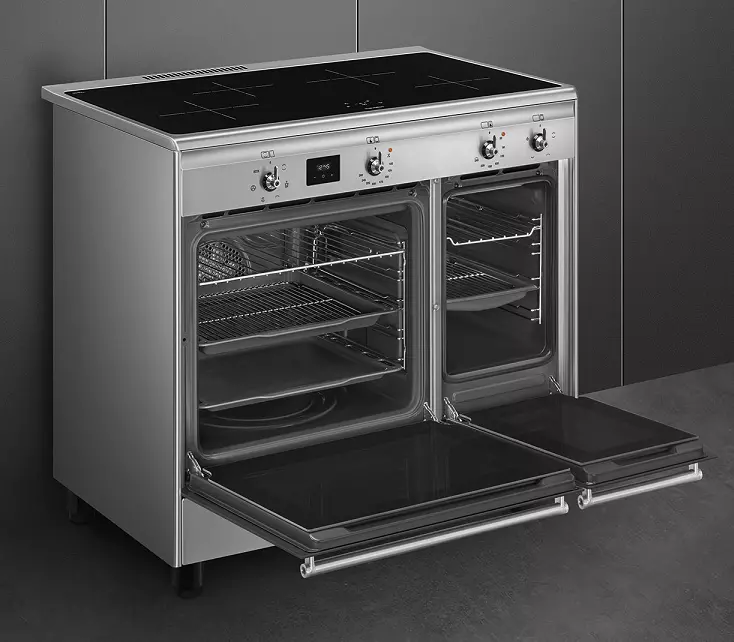 Piano spacieux et polyvalent parfait pour préparer plusieurs plats à la fois, équipé de fours électriques et d'un plan à induction : une synthèse parfaite de style, de qualité et de technologie grâce à une chaleur homogène et instantanée, une sécurité maximale et une attention à la consommation.