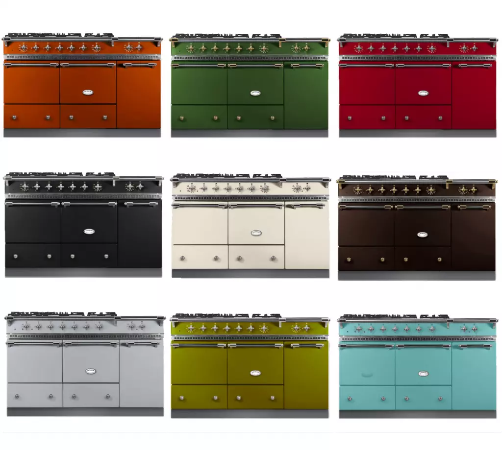 Le piano de cuisson Cluny 1400 permet d'associer aux cinq foyers et deux fours, une armoire neutre ou basse température ainsi qu'une fonction de table de cuisson (feux vifs, foyers électriques, cuiseur vapeur, friteuse, plancha ou gril).