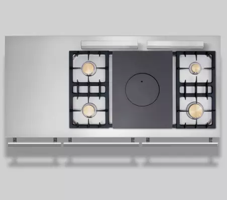 Le piano de cuisson Cluny 1400 associe la configuration du Cluny 1000 et une armoire latérale sur laquelle peut être intégrée une fonction supplémentaire pour compléter la table de cuisson (plancha, cuiseur vapeur, gril).