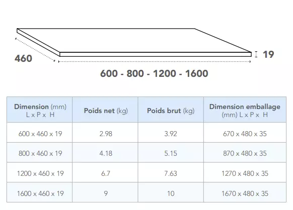 Plan mélaminé MFC hydrofuge de 19 mmFinition chêne doré