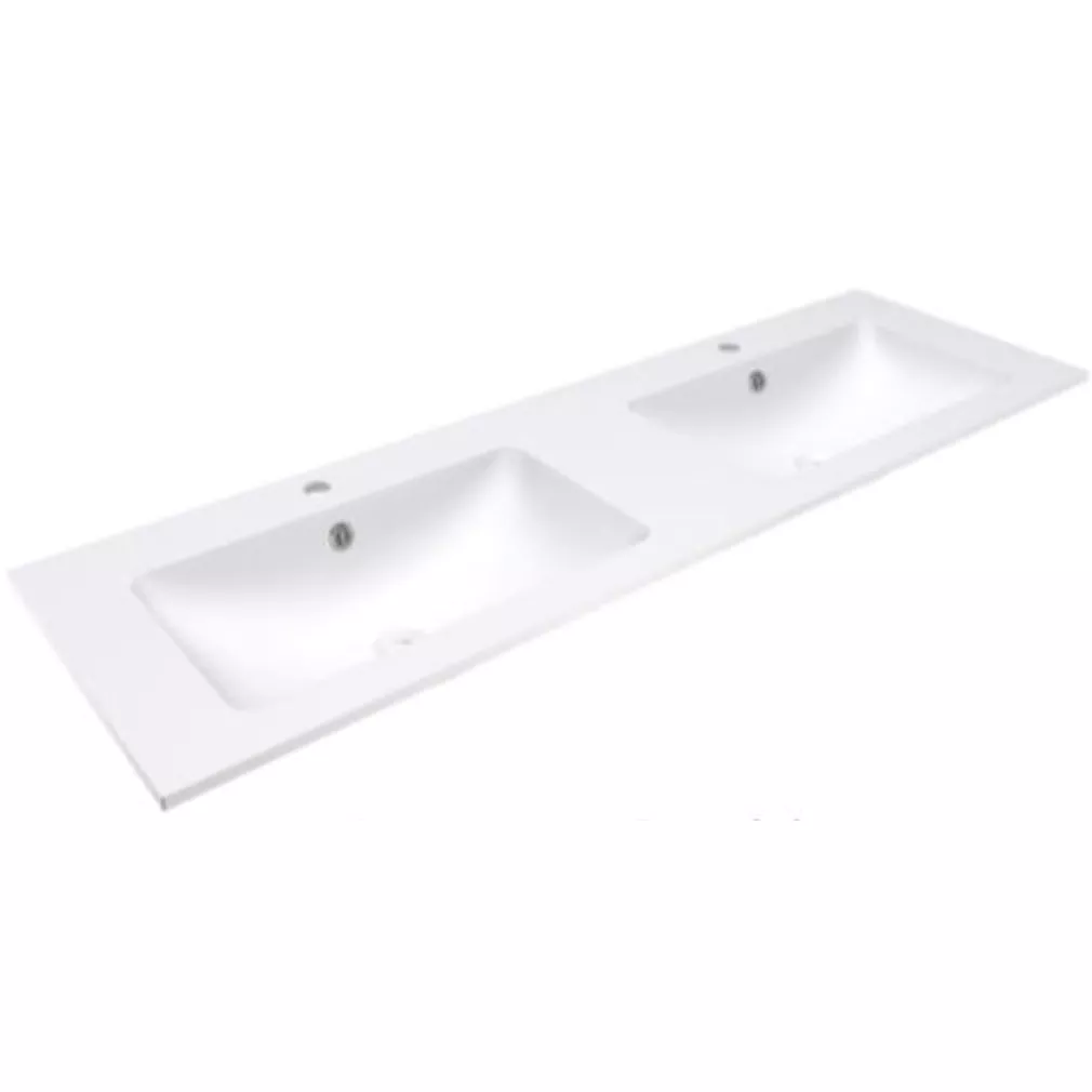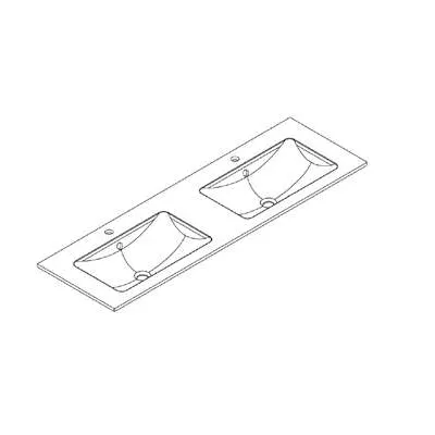 Plan double vasque Solid Surface pour meuble Bento uniquement2 trous de robinetAvec trop-plein intégréL 150.5 X P 46 X H 14 Poids: 25 kg