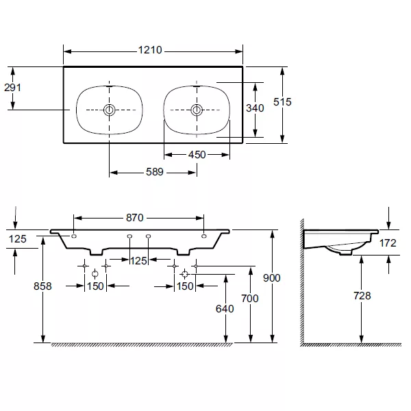 Sans trou de robinet pour installation avec robinetterie murale